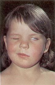 A six year old girl with a left-sided Bell's Palsy. An adult female paralysis tick Ixodes holocyclus had been embedded behind the left ear for several days. The left side of the face, and the left-sided peri-ocular muscles are paralysed (Moorhouse, 1981).